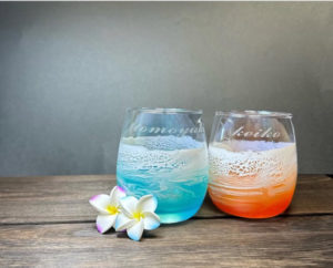 ・ グラスに海の波打ち際を表現した作品になります。